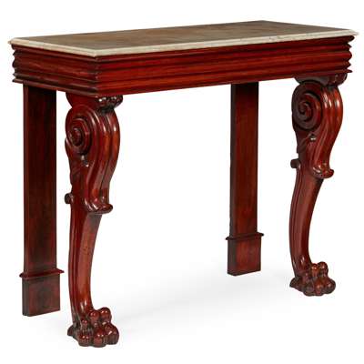 WILLIAM IV MAHOGANY MARBLE TOPPED CONSOLE TABLE