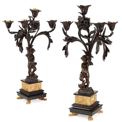 PAIR OF FRENCH BRONZE FIGURAL CANDELABRA