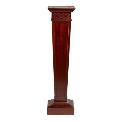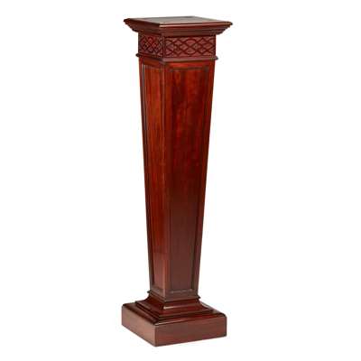 the square top above a carved blind fretwork frieze on a square section tapering column and moulded base