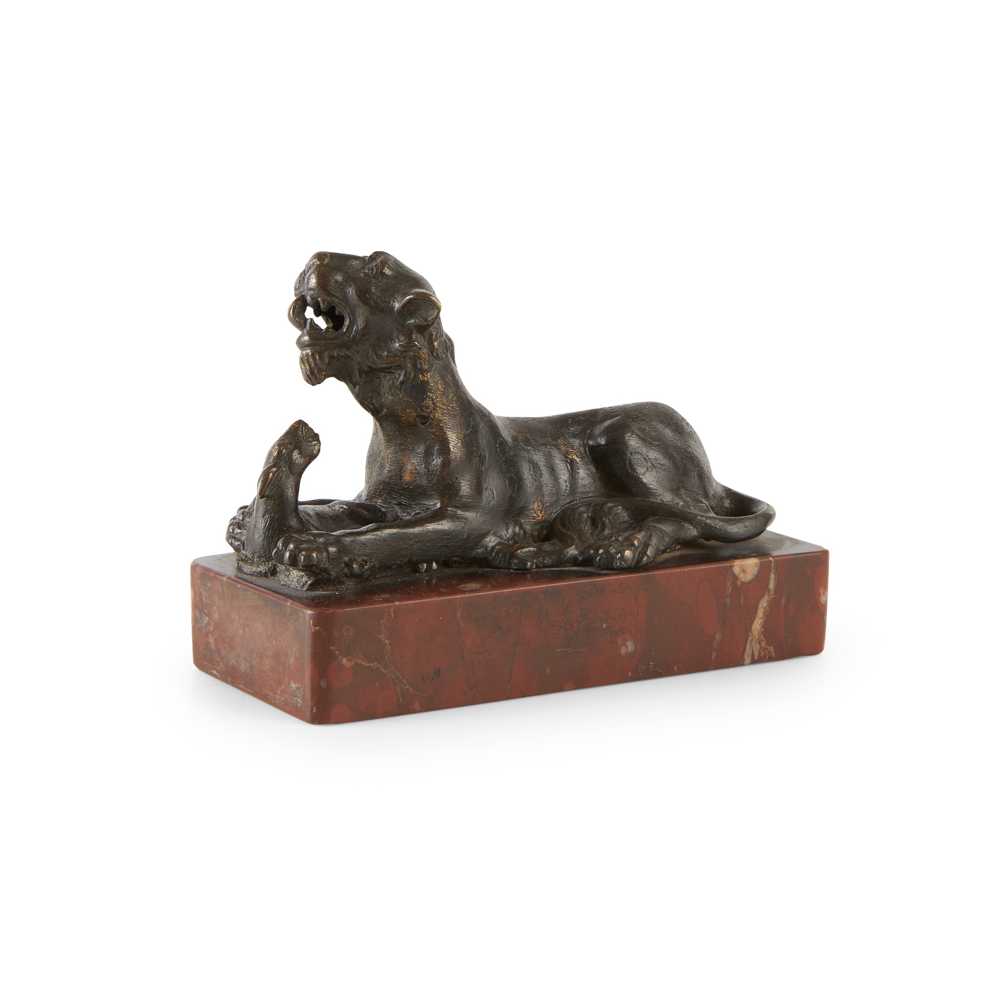 NORTH ITALY BRONZE FIGURE OF A PANTHER ATTACKING A HARE