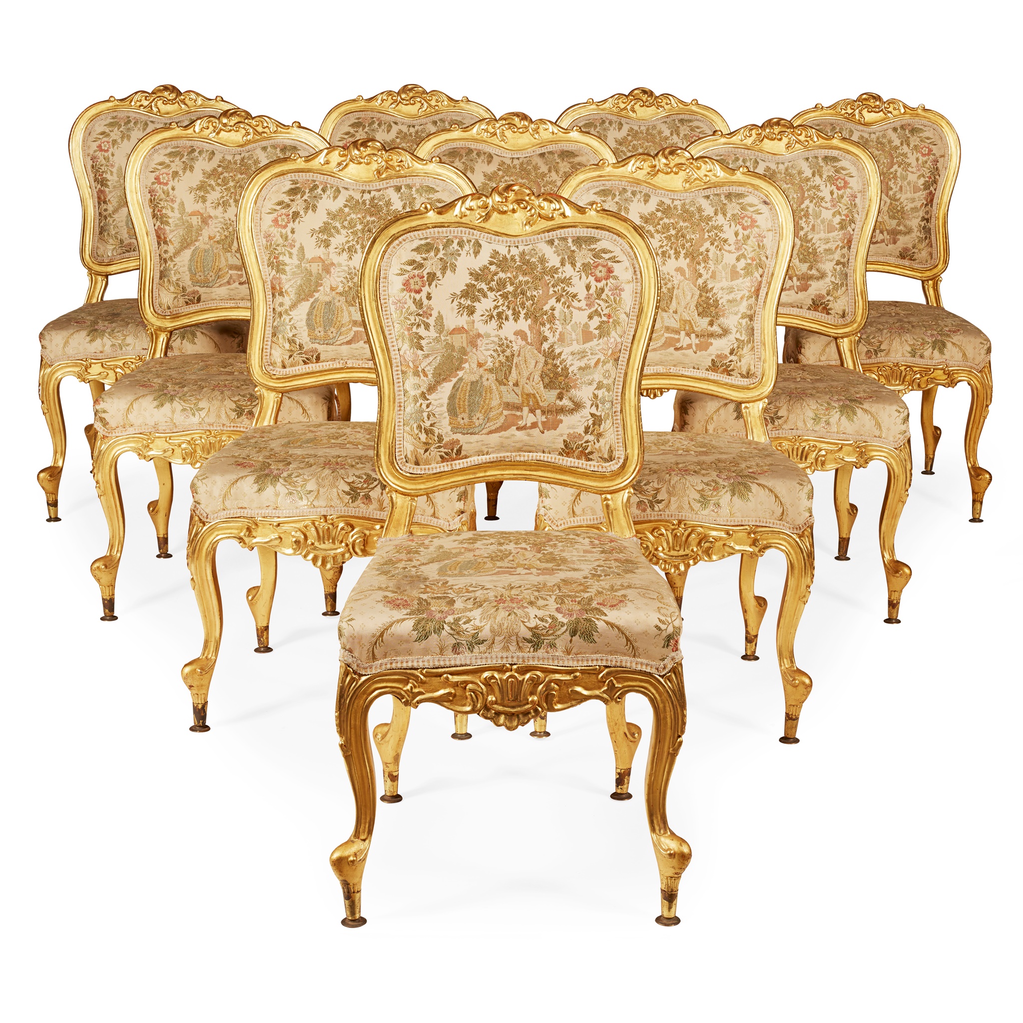 SET OF TWELVE FRENCH GILTWOOD SALON CHAIRS