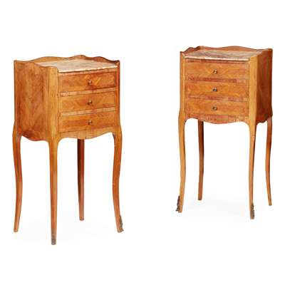 PAIR OF FRENCH KINGWOOD MARBLE TOP BEDSIDE COMMODES