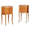 the marble insert tops with three quarter galleries above three crossbanded drawers, raised on slender cabriole legs with gilt metal mounts