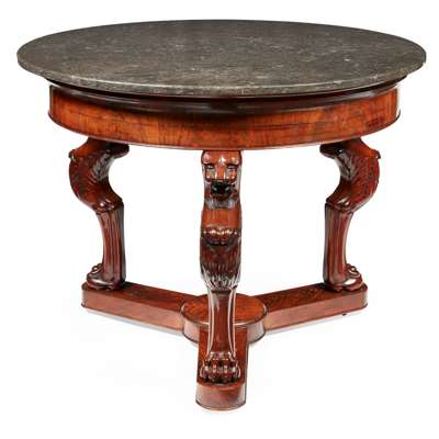 EMPIRE MAHOGANY AND MARBLE TOPPED GUERIDON