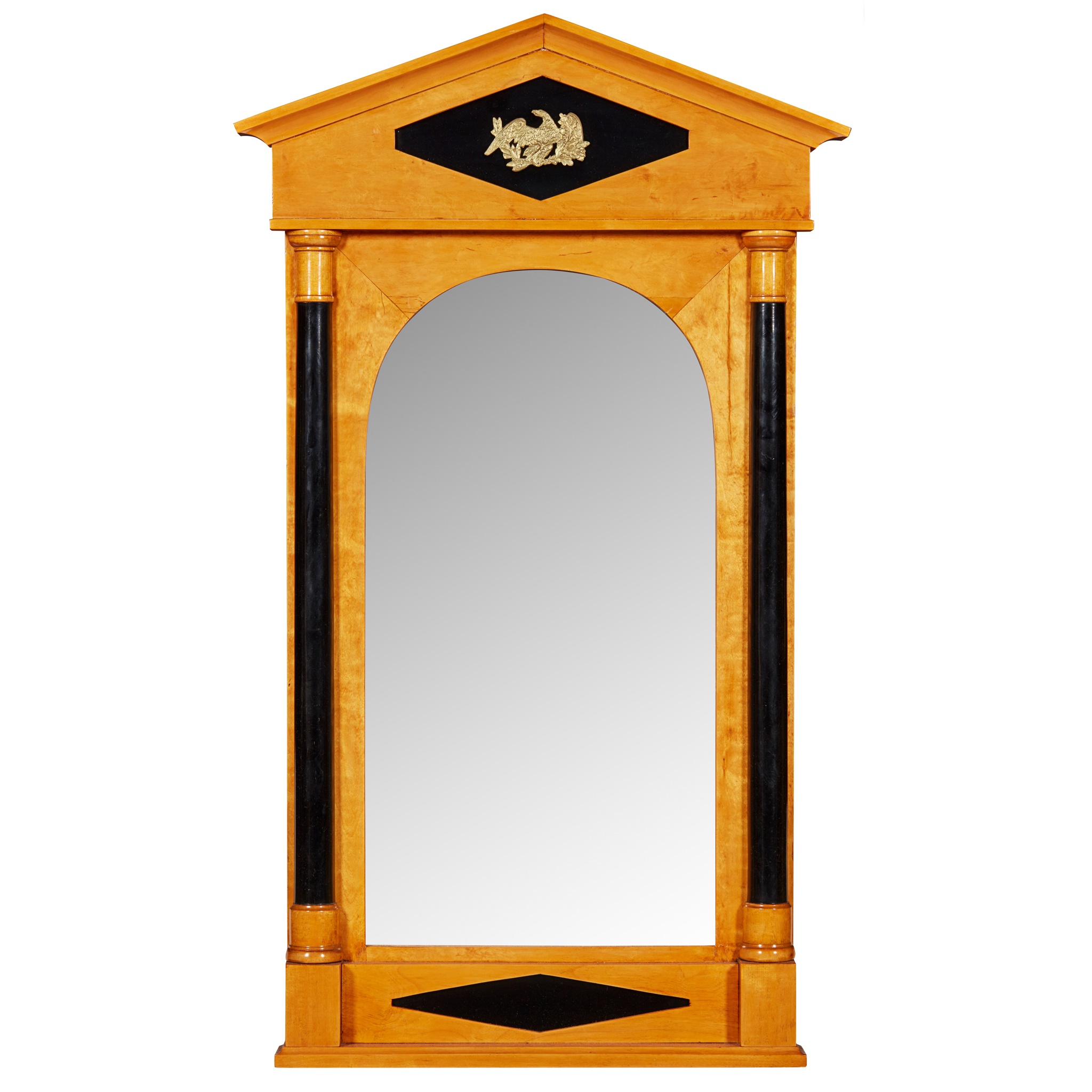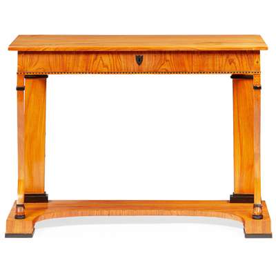 BIEDERMEIER SATIN BIRCH AND EBONISED CONSOLE TABLE AND PIER MIRROR