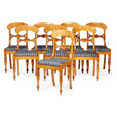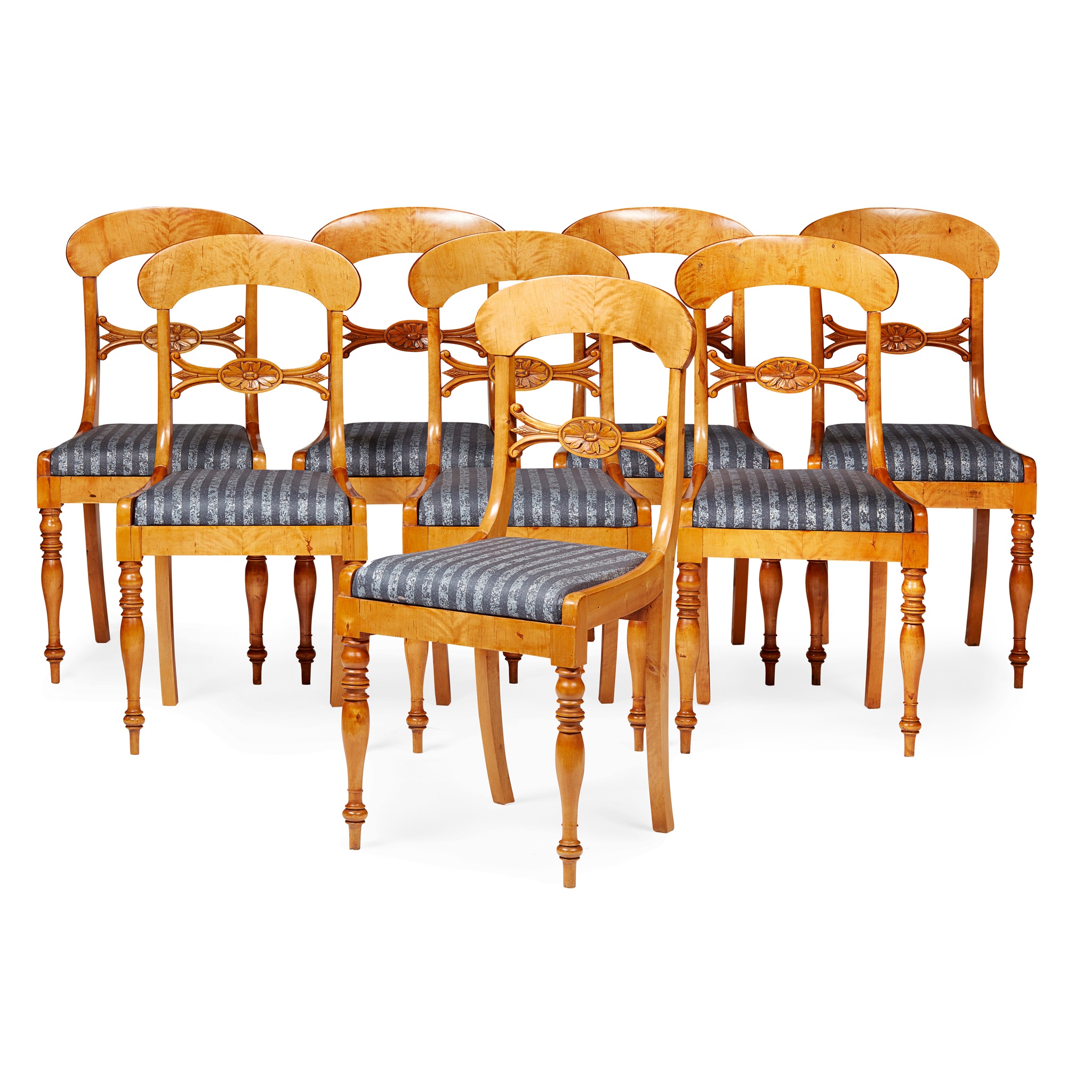 SET OF EIGHT BIEDERMEIER BIRCH DINING CHAIRS