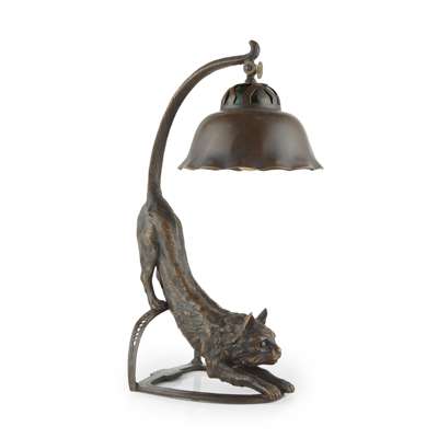 FRENCH ART NOUVEAU BRONZE CAT TABLE LAMP