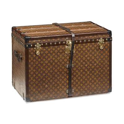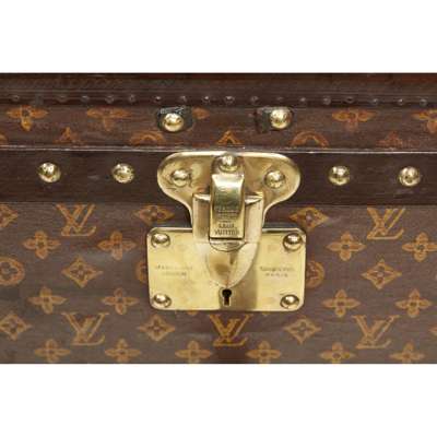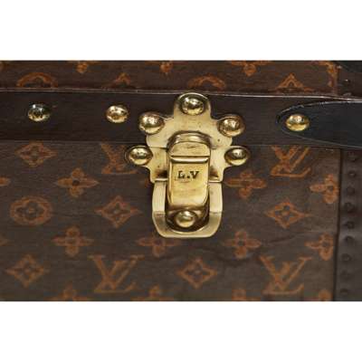 with double hat facility, in signature monogram leather outlined in leather with a buckle strap and stamped brass locks and closures