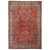 the red field with allover stylised foliate lozenge pattern, within ivory stylised palmette and vine border