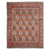 the red field with allover indigo and ivory tree cartouche pattern, within red tree and foliate border