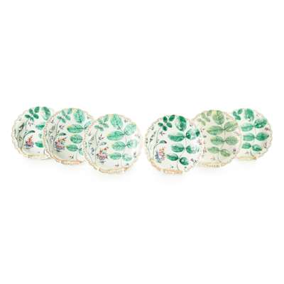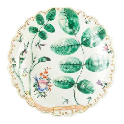 with gilt scalloped edges and decorated with single rosebuds, flower sprigs and sprays