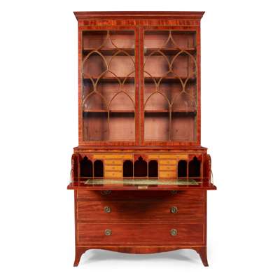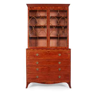 LATE GEORGE III MAHOGANY BUREAU BOOKCASE