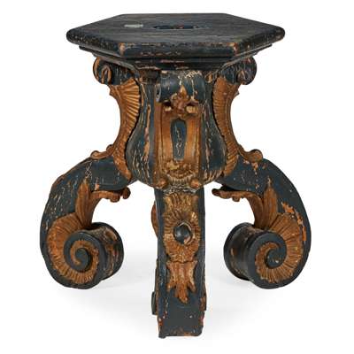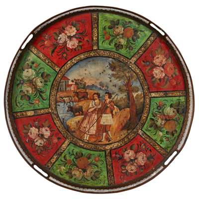 TOLE TRAY AND PARCEL-GILT CARVED OCCASIONAL TABLE
