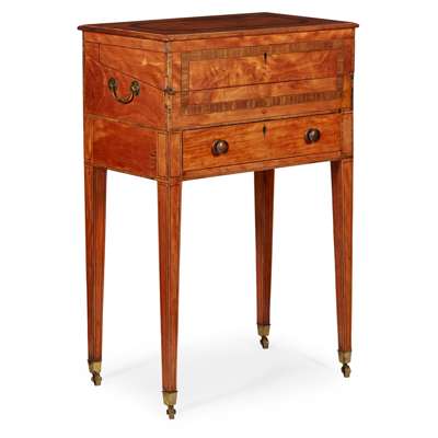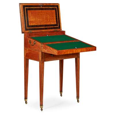GEORGE III SATINWOOD, PARTRIDGEWOOD, AND ROSEWOOD SECRETAIRE TABLE Y