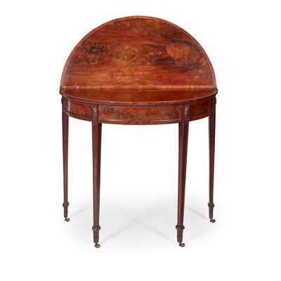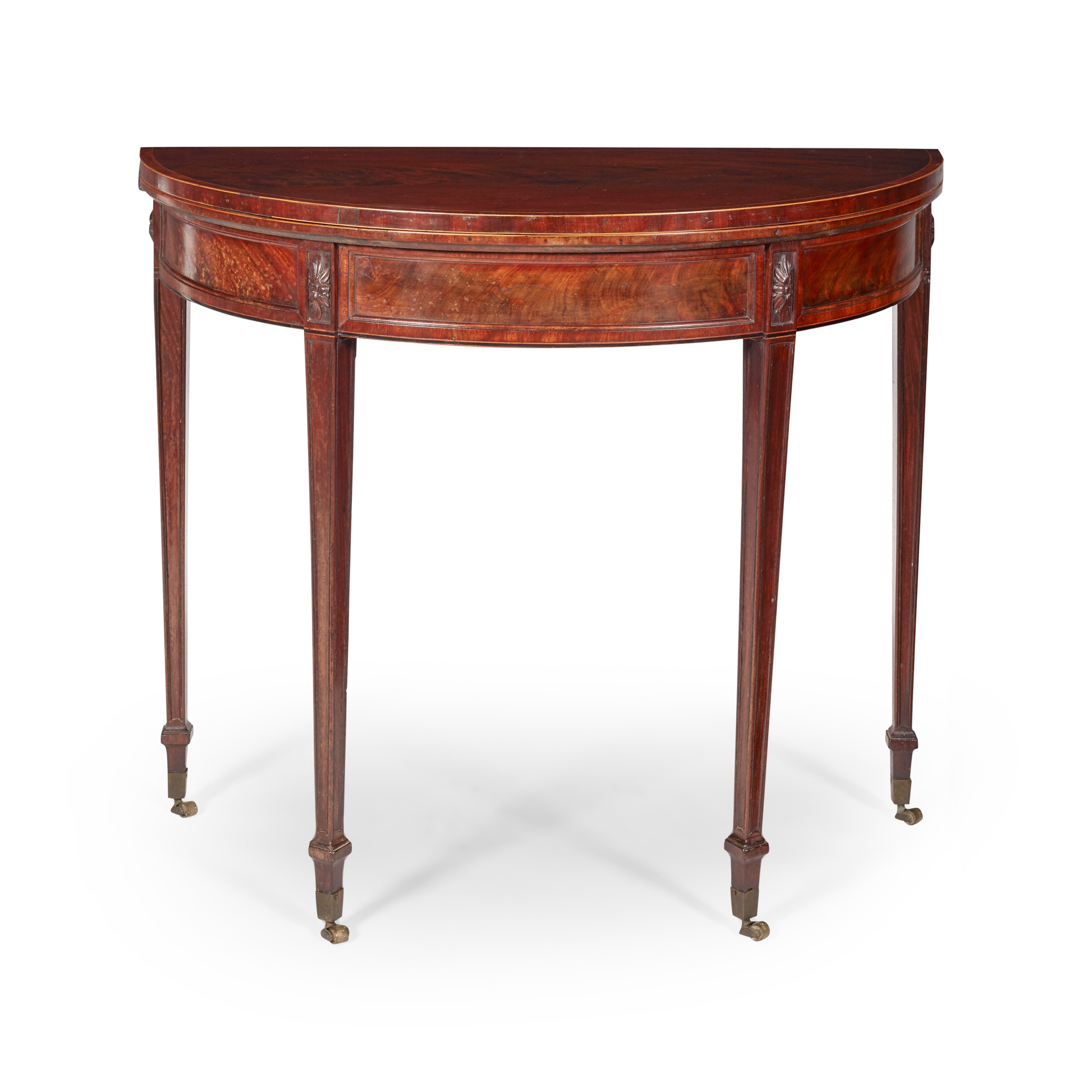 GEORGE III MAHOGANY INLAID DEMILUNE TEA TABLE