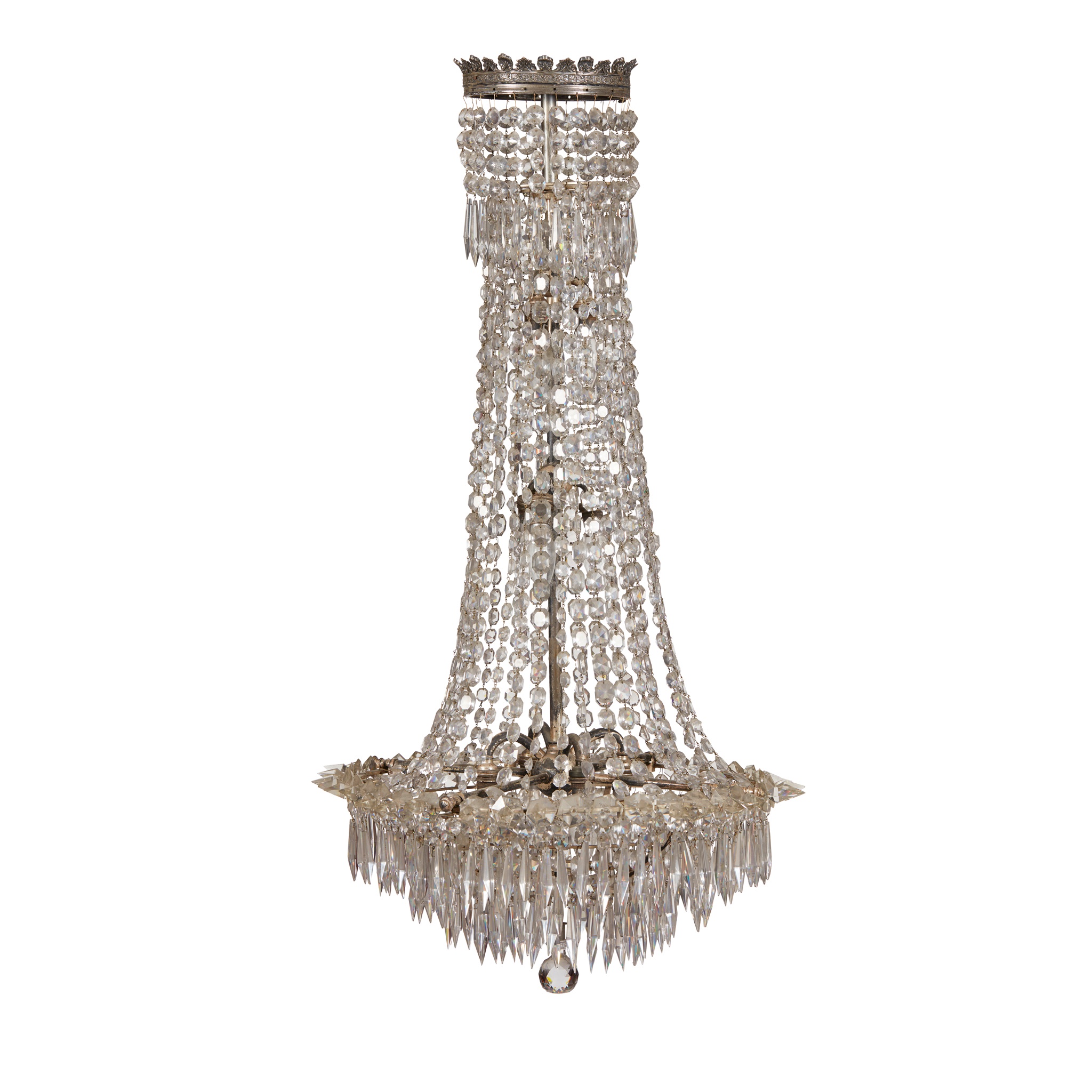 REGENCY STYLE CUT GLASS AND SILVERED CHANDELIER