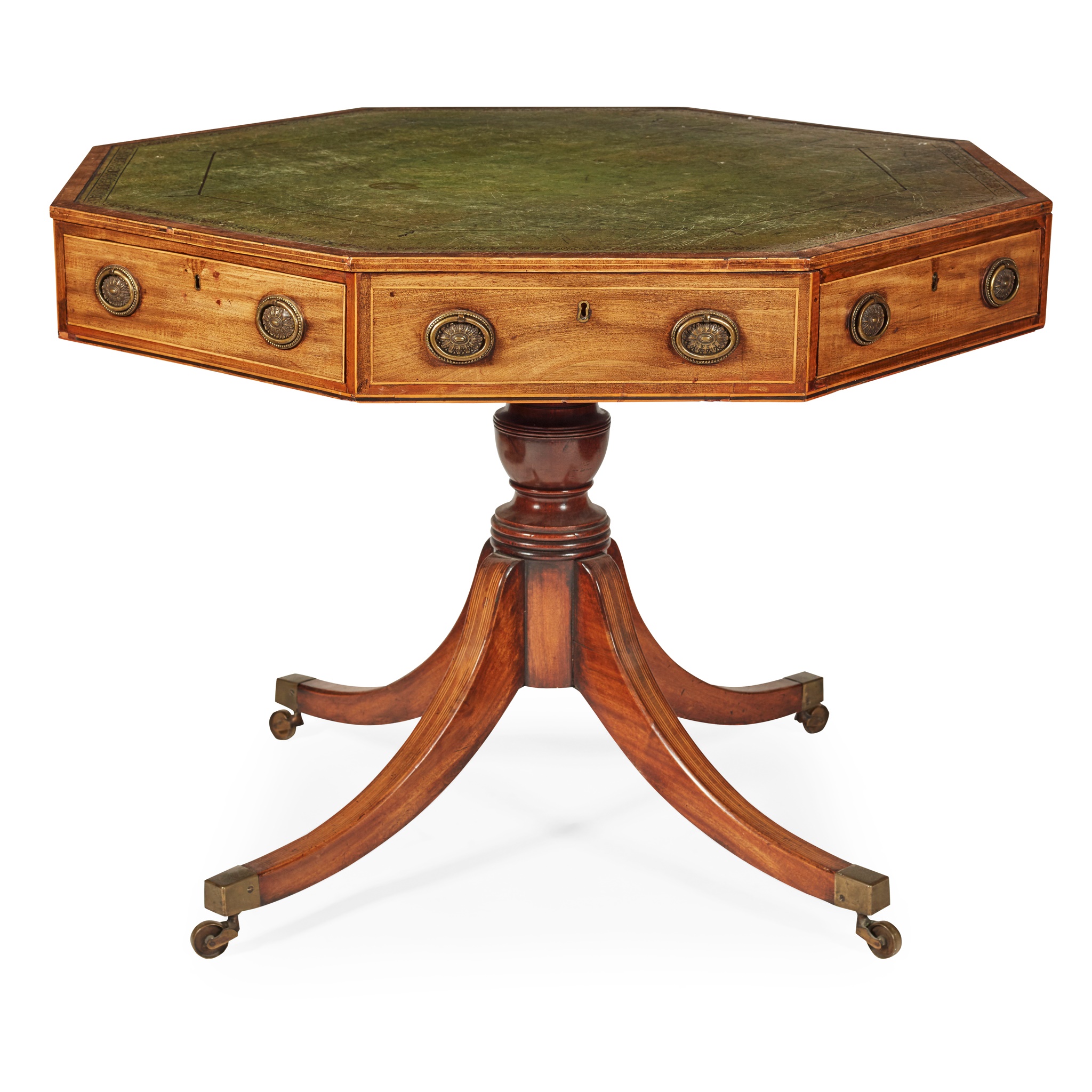LATE GEORGE III MAHOGANY OCTAGONAL DRUM TABLE