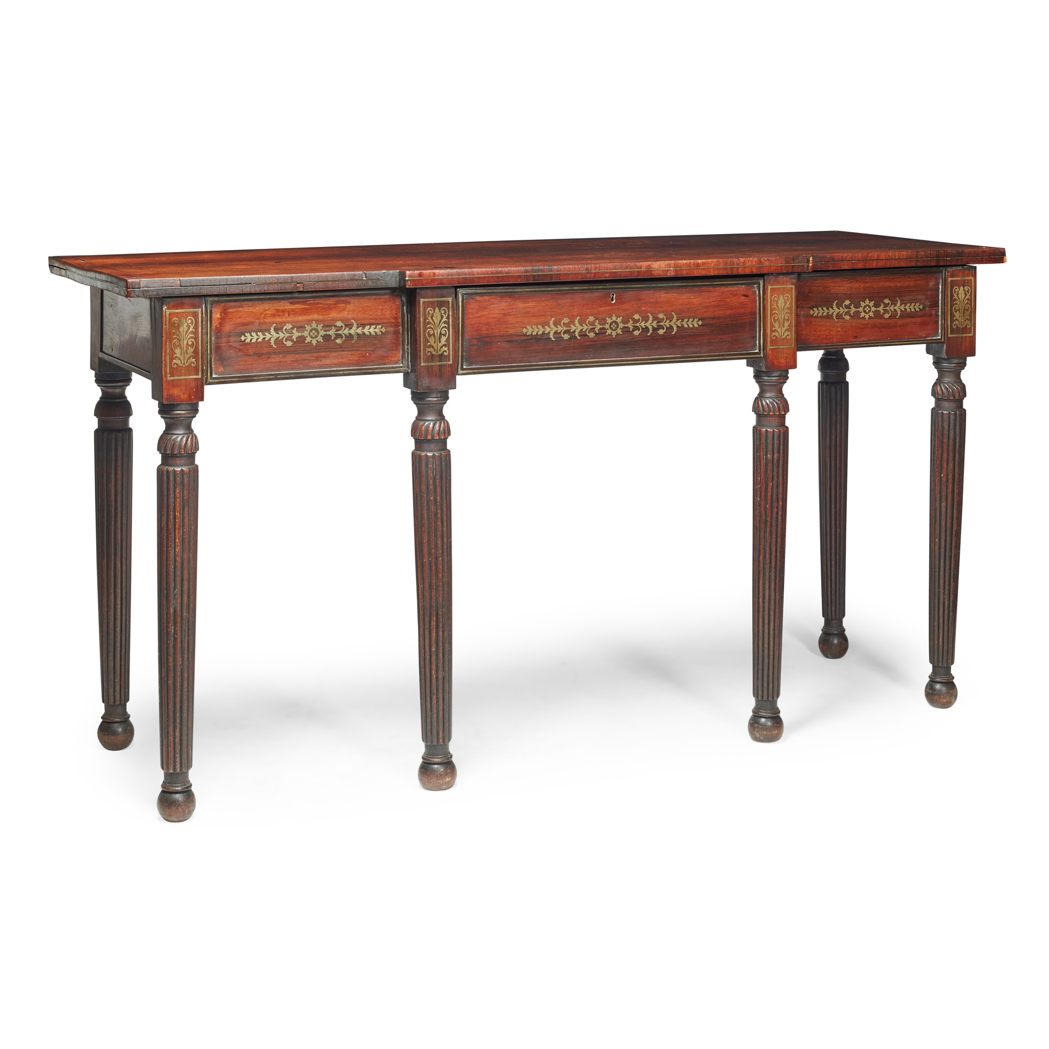 REGENCY ROSEWOOD AND BRASS INLAID BREAKFRONT SERVING TABLE Y