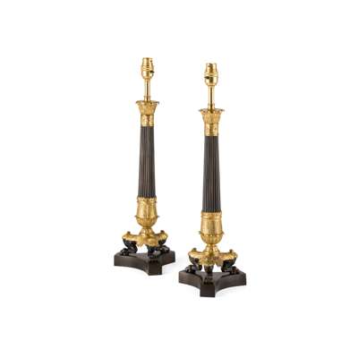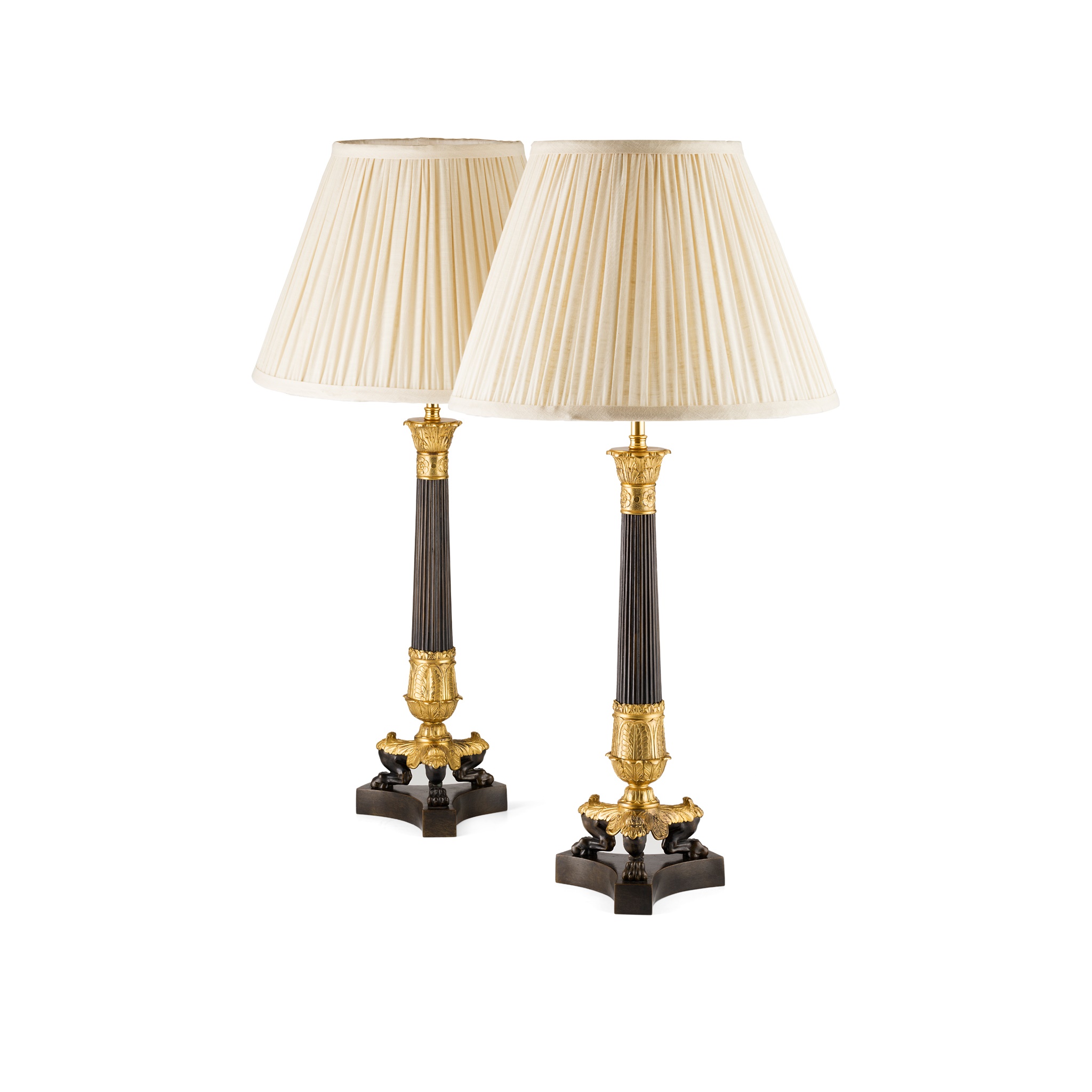 PAIR OF REGENCY ORMOLU AND PATINATED BRONZE LAMPS