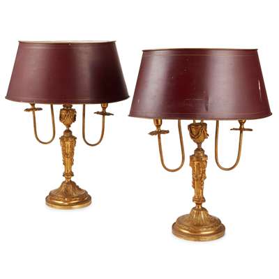 PAIR OF GILT BRASS AND TOLE LAMPS