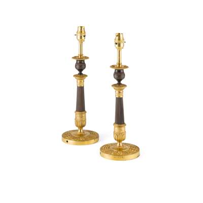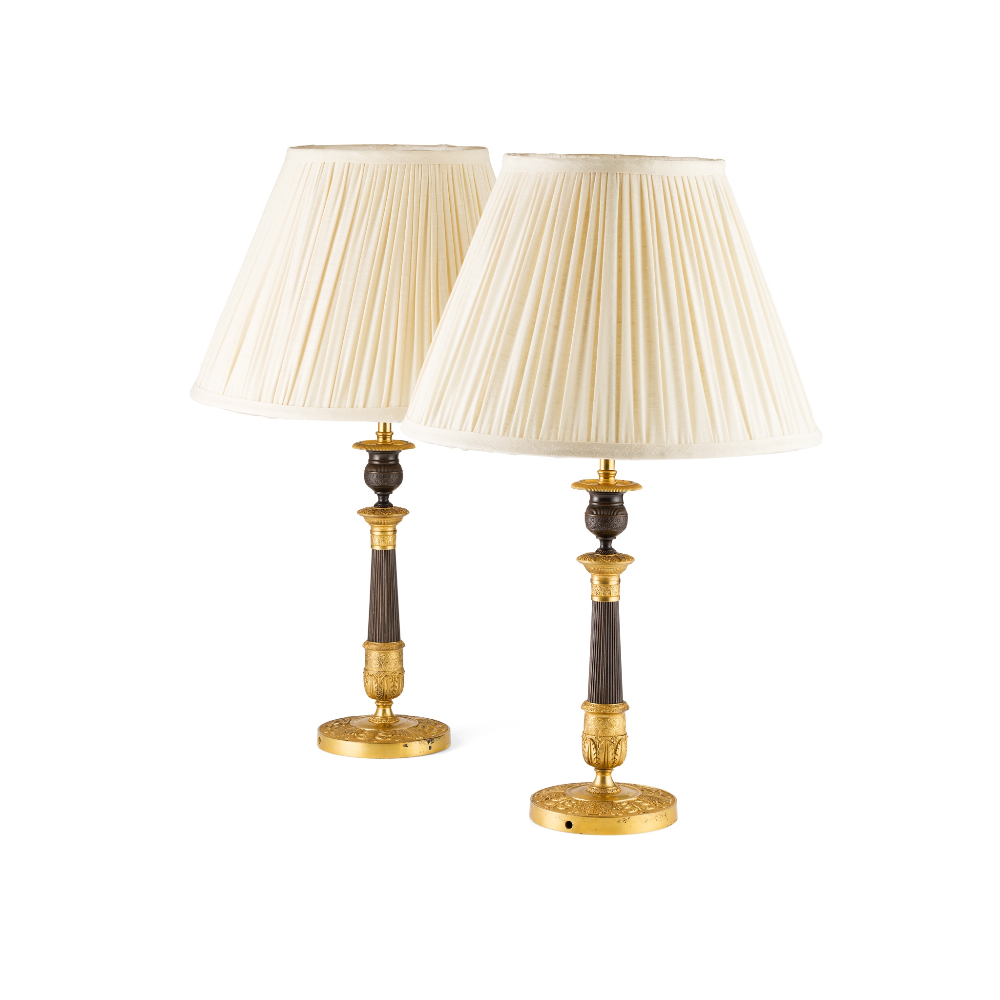 PAIR OF REGENCY BRONZE AND ORMOLU CANDLESTICK LAMPS