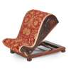 the hinged S shaped padded top with a ratchet adjustment, covered in yellow and red foliate upholstery