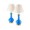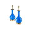 PAIR OF BLUE GLASS GILT METAL MOUNTED LAMPS