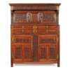dated and initialled IB 1709, the superstructue with a moulded cornice above a wheel carved frieze over doors carved with leaf and flower motifs; the base with four short drawers with chamferred panels fronts, above a pair of triple panel cupboard doors similary carved, raised on stile feet
