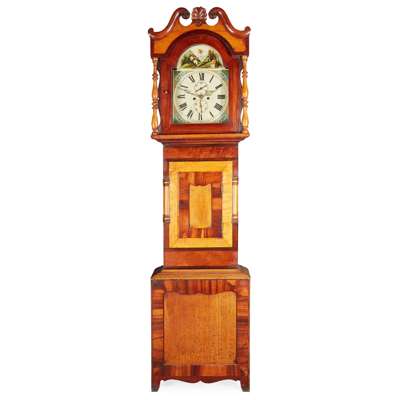 EARLY VICTORIAN SPECIMEN WOOD LONGCASE CLOCK