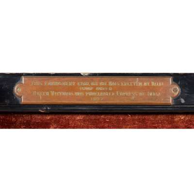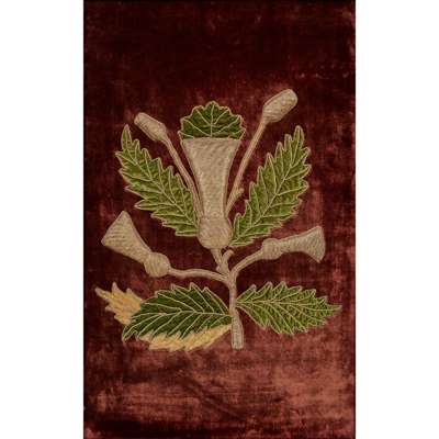 Note: On the 1st January 1877, the 1st Earl of Lytton, Viceroy of India, read a proclamation declaring Queen Victoria as Empress of India at the Delhi Durbar, a mass assembly of dignitaries, maharajas, and nawabs, held on the vast plain of Coronation Park in Delhi. These needlework panels were located on the central hexagonal tent-like pavilion, or shamiana, positioned at the frieze in a band above bannerettes encircling the upper tent-like cover, some 35 feet above the ground. Lytton insisted that no Indian imagery or designs were to be used in the decorative scheme for the event, although he did allow the Indian lotus to accompany the English rose, Scottish thistle, and Irish shamrock on the frieze, all represented here. A contemporary photograph of the pavilion showing the panels in situ can be found in the Royal Collection, https://www.rct.uk/collection/2917578/the-imperial-assemblage-delhi-1877