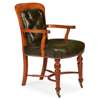 covered in button upholstered green leather outlined with close nail trim, the tapered legs with a crinoline stretcher and brass caps and castors