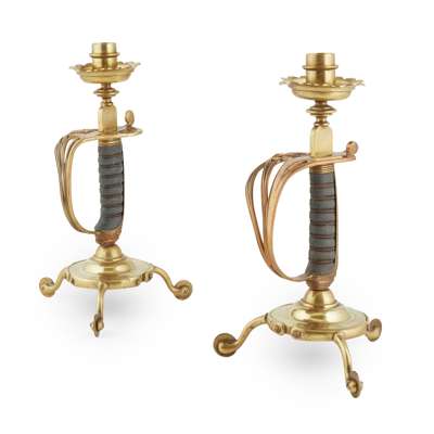 PAIR OF ENGLISH ARMY SWORD HILT CANDLESTICKS