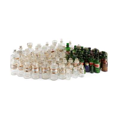 LARGE COLLECTION OF GLASS PHARMACY BOTTLES