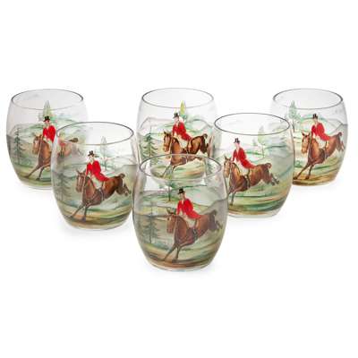 ART DECO ENAMELLED GLASS LEMONADE SET, OF HUNTING INTEREST