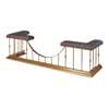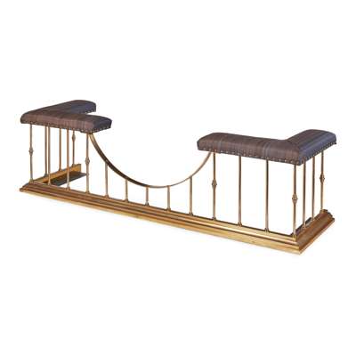 the L shaped seat pads covered in horsehair flanking a U-shaped centre, on brass spindles and a stepped base
