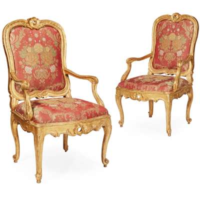 PAIR OF ITALIAN ROCOCO CARVED GILTWOOD ARMCHAIRS
