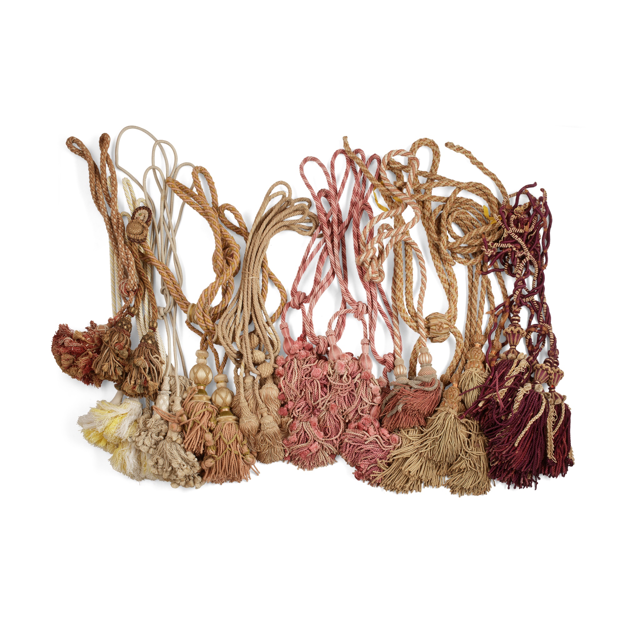 GROUP OF DRAPERY TIEBACK TASSELS AND BELL PULLS