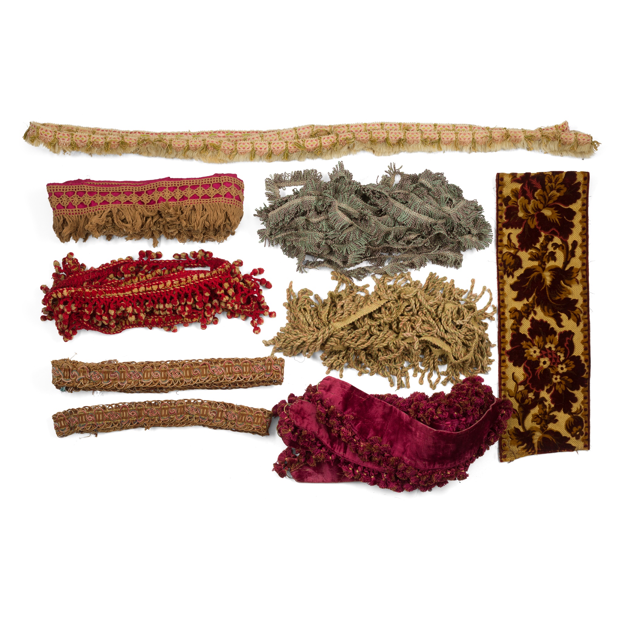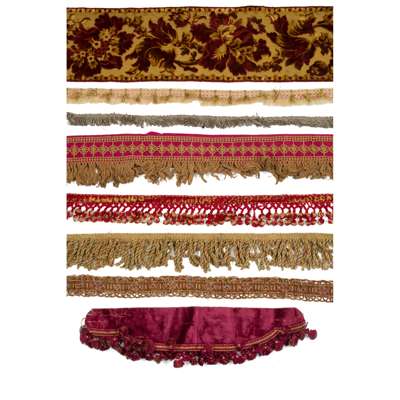 to include various lengths of decorative braiding, tapes, cord, fringing, velvet, etc.
