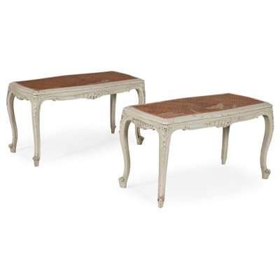 PAIR OF FRENCH PAINTED AND CANED BERGERE STOOLS