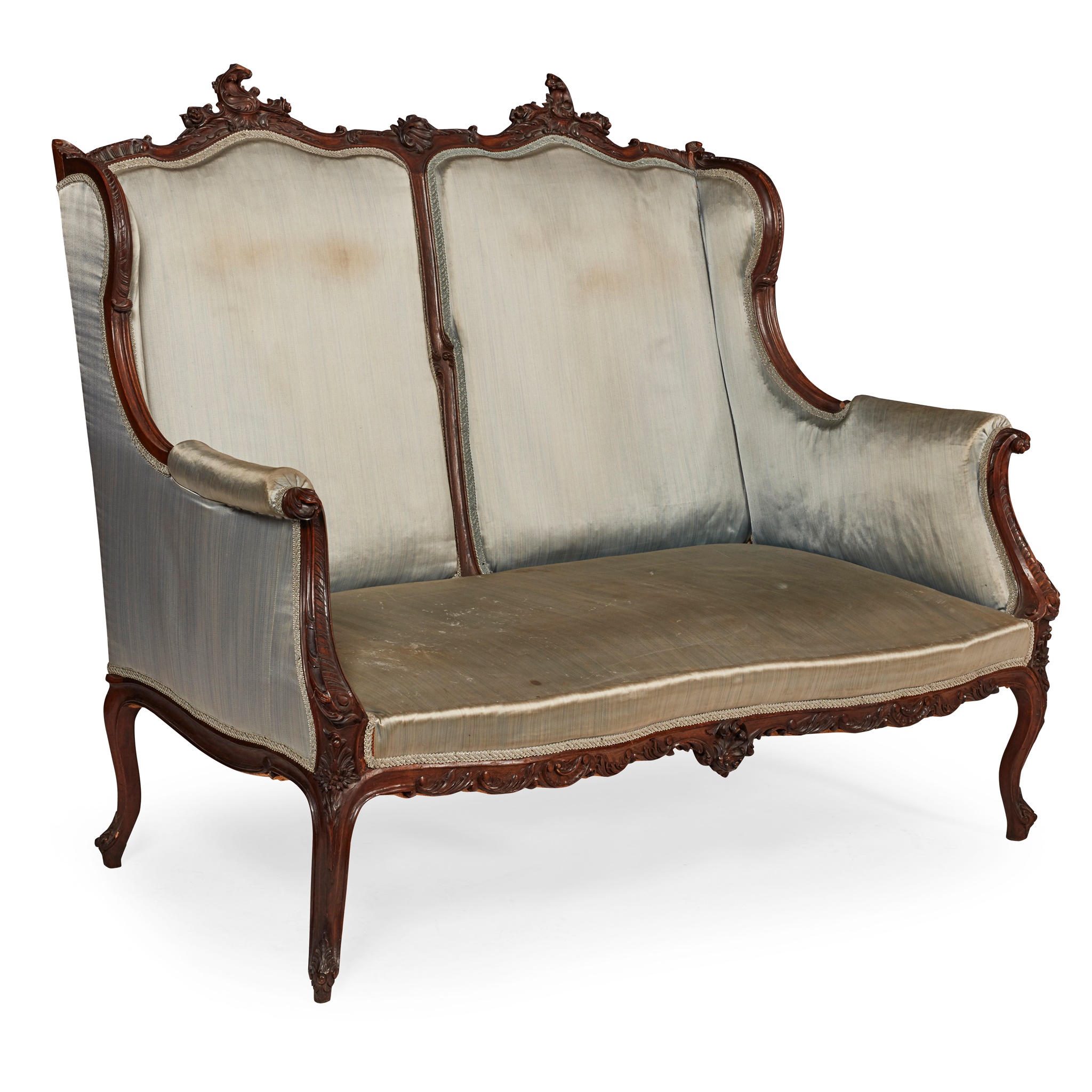 LOUIS XV STYLE WALNUT FRAMED TWO SEAT SOFA