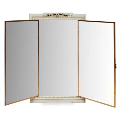 FRENCH PAINTED AND BRASS TRIPTYCH DRESSING MIRROR, MIROIR BROT, PARIS