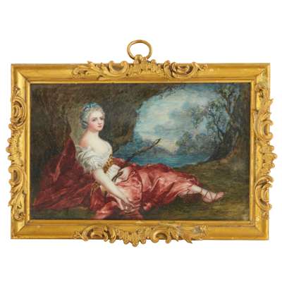 FRENCH SCHOOL, MINIATURE PAINTING OF A LADY AS DIANA THE HUNTRESS Y