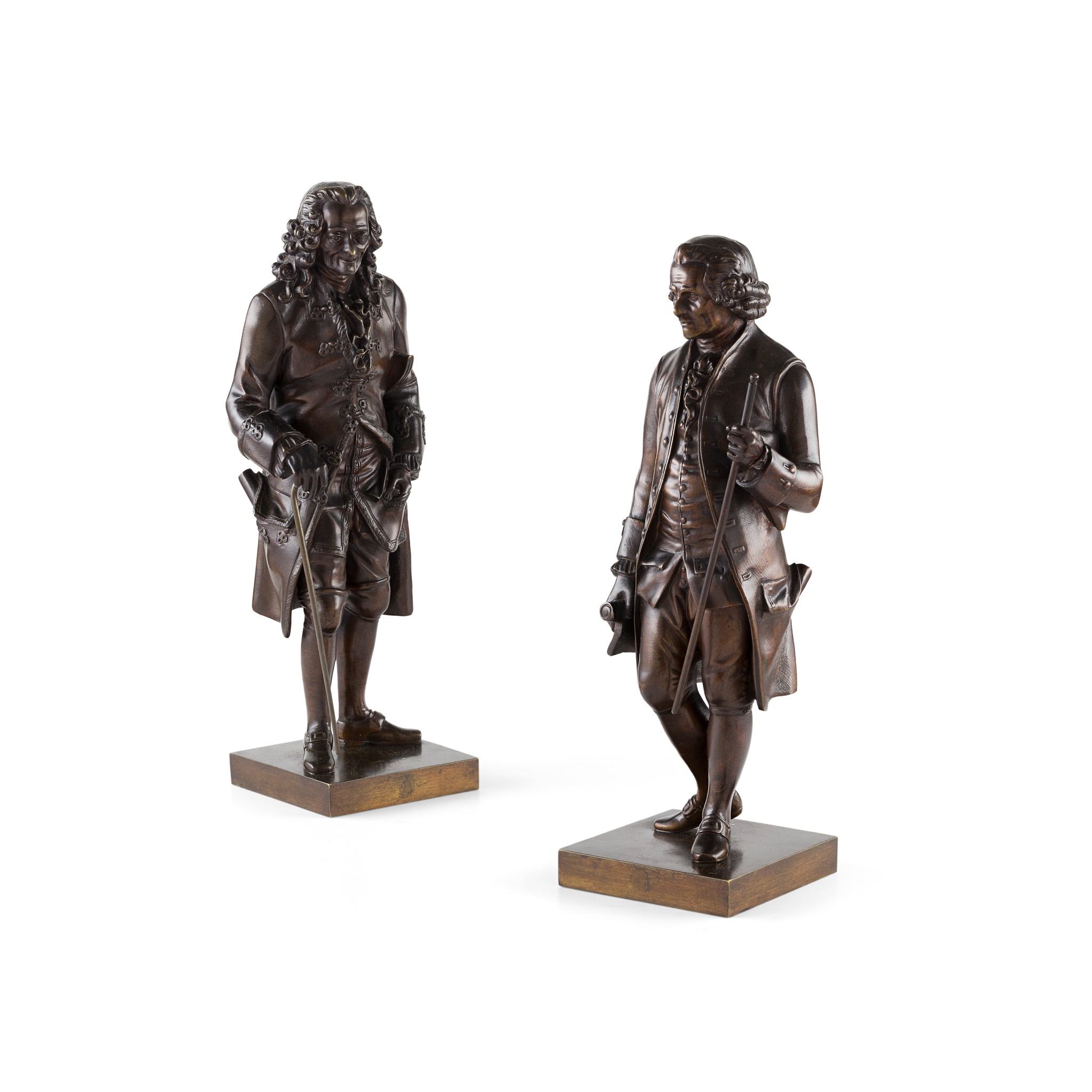 PAIR OF FRENCH BRONZE FIGURES OF VOLTAIRE AND ROUSSEAU
