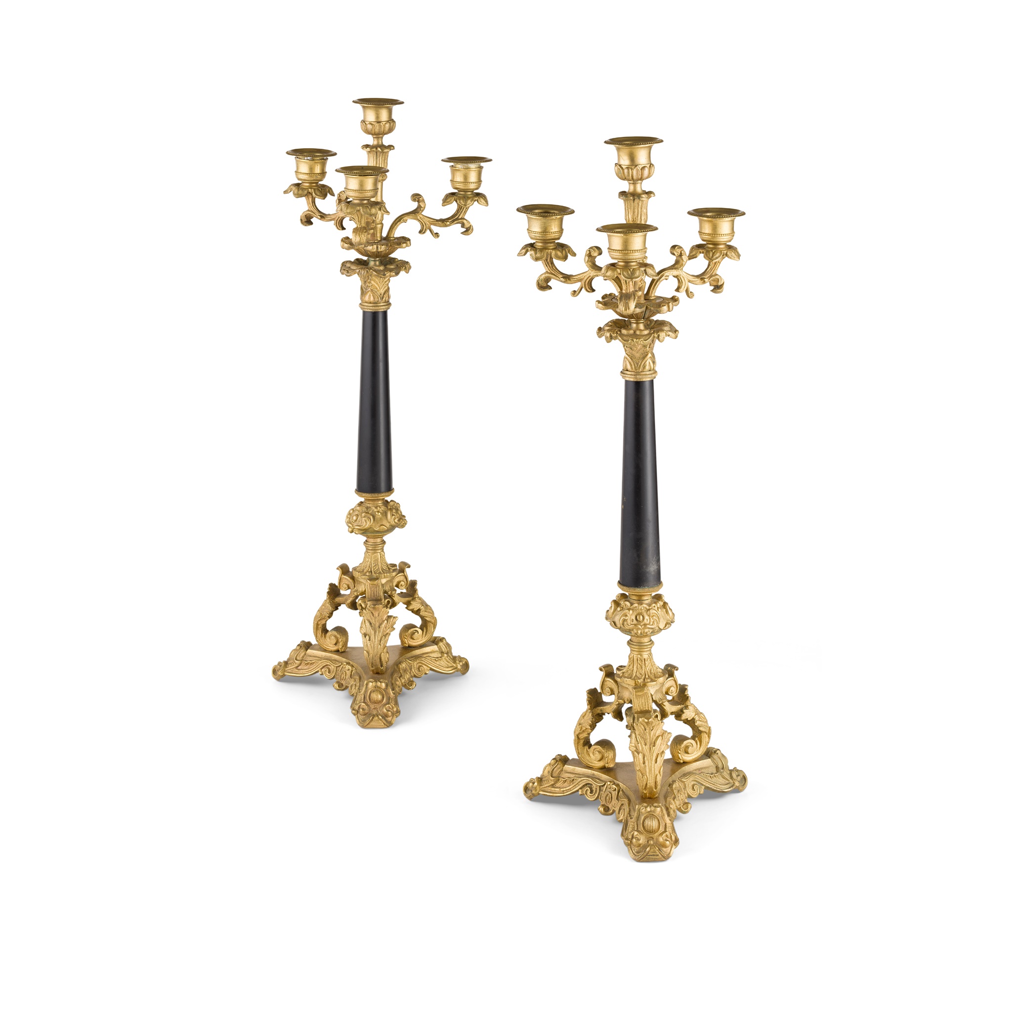 PAIR OF FRENCH CHARLES X GILT AND PATINATED BRONZE CANDELABRA