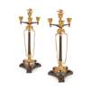 PAIR OF FRENCH GILT AND PATINATED BRONZE CANDELABRA