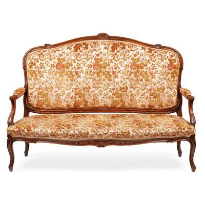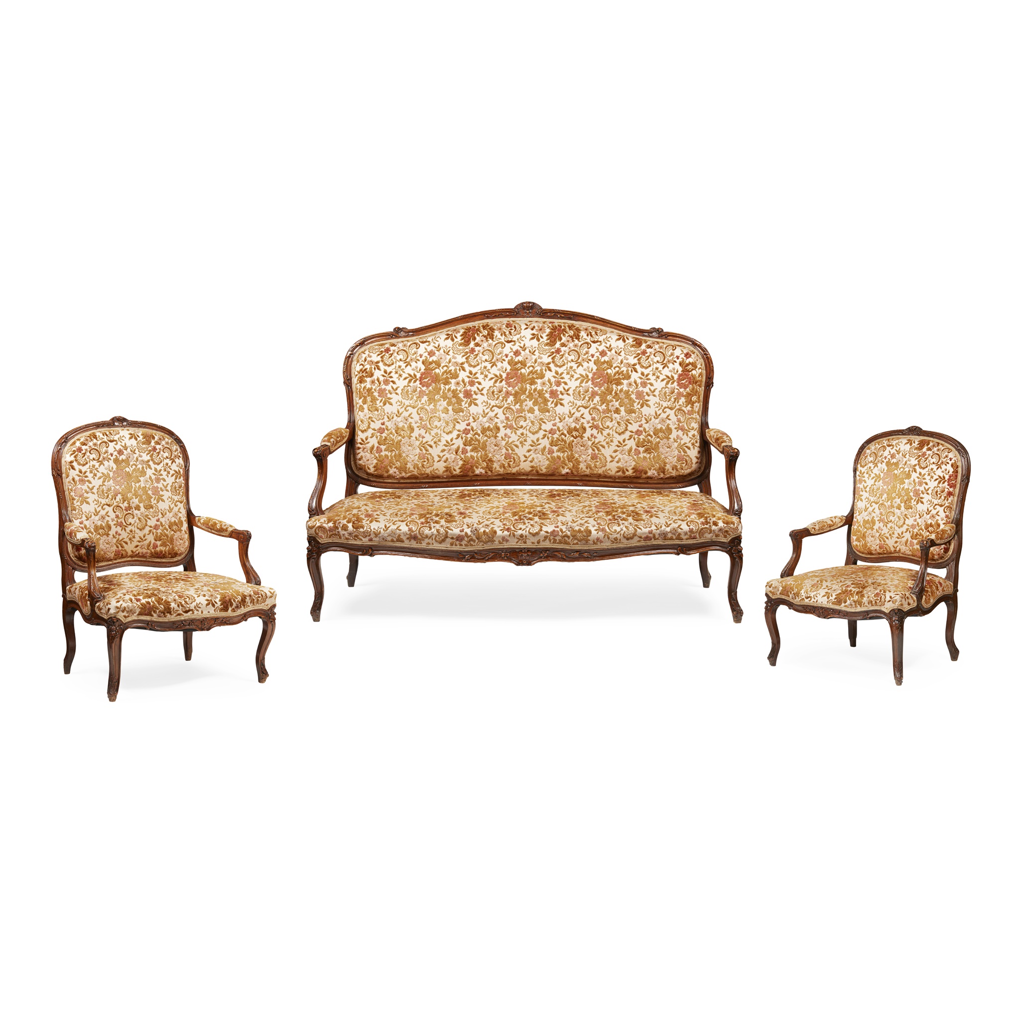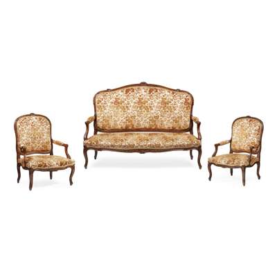 LOUIS XV STYLE WALNUT FRAMED THREE PIECE SALON SUITE