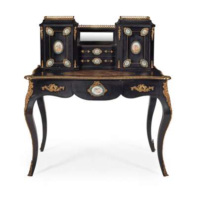 NAPOLEON III EBONISED AND PORCELAIN MOUNTED BUREAU