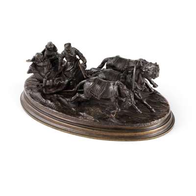 RUSSIAN BRONZE TROIKA GROUP CAST BY WOERFFEL, AFTER THE MODEL BY VASILII GRACHEV