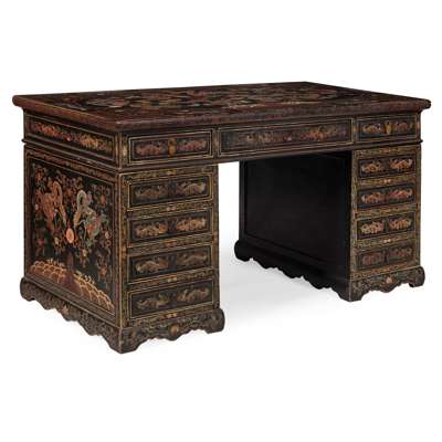 CHINESE COROMANDEL LACQUER PEDESTAL DESK