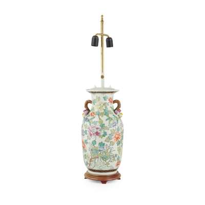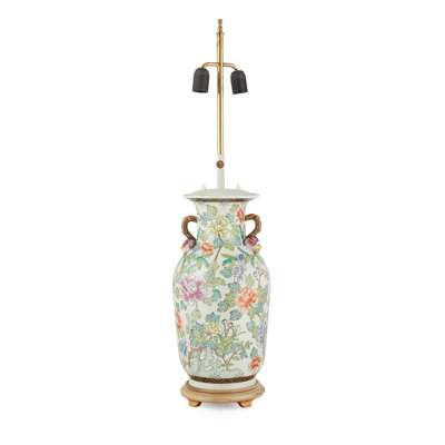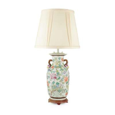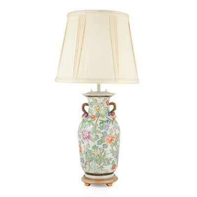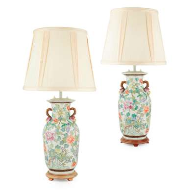 PAIR OF CHINESE FAMILLE ROSE BALUSTER VASE LAMPS